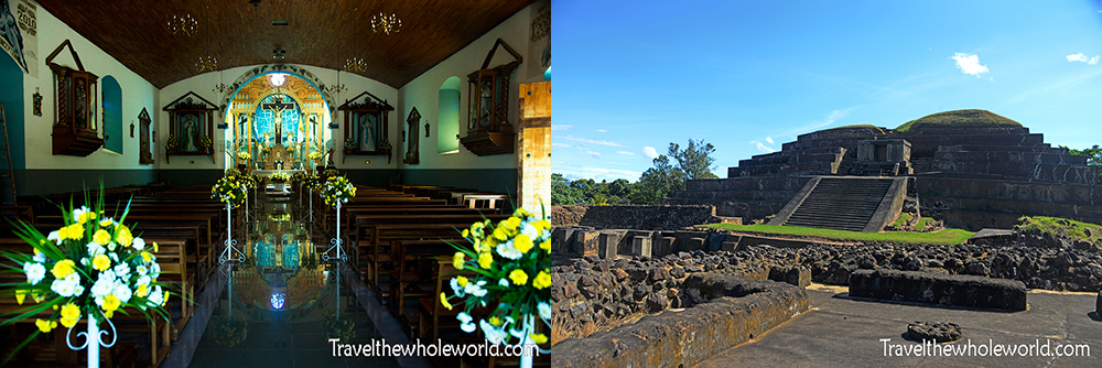 Tazumal is El Salvador’s most impressive Mayan ruin. The giant pyramid rising out of the surrounding jungle and remains largely intact. Archaeologists have recovered many items from the site that are on display at the local museum. In addition to Tazumal, many people visit the nearby villages on the way from San Salvador. Most of the colorful villages have cobblestone streets and and are decorated with flowers. This is known as the Ruta de las Flores.