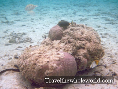 an absolutely amazing experience. Someone offered me to go snorkeling with them and I almost declined. I had been swimming on the beach all day and I couldn’t imagine anything interesting underwater but the second I put on the mask and swam to a coral area I saw dozens of exotic fish normally seen in a pet store. I really wish I had a better camera at the time but I can only do a better photography job when I return. At one point I went deep enough and the tide had dropped leaving me in a coral maze seen to the left. I didn’t risk swimming above it since I could get seriously hurt if a wave forced me down on the coral. I had to spend a good amount of time navigating out of the coral maze while staying over sand.