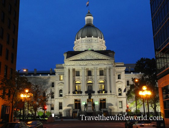 Indianapolis is the state’s largest city, and the second largest capital city in America after Phoenix Arizona. After Washington DC, the city is second in the nation for having the most memorials and statues. Above is the capitol building in the downtown part of the city, with an outdoor walkway that was part of another government building.