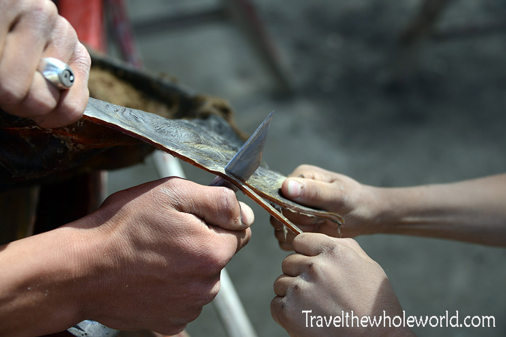Another place I visited was actively building a yurt. The people were nice enough to show me some of the steps that they go through. In the photo above they are cutting a hide from a cow which is used as a sort of a short rope to bind some of the materials together. Building a yurt certainly takes skill, but when it’s all said and done they are relatively easy to take down and set up again. They sort of act as giant tents in a way, and for nomadic people that roamed the plains this was essential to their lifestyle.