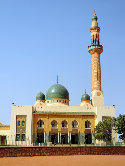 The capital of Niger is also the largest city called Niamey located in the southwestern region of the country. Niger is an Islamic country but still has a sizable Christian minority living in some of its larger cities. A famous landmark of Niger’s capital is the Grande Mosque pictured above and below. The mosque is enormous and is the biggest in the country. Above is a photo of the outside on the upper left and the main prayer area for men on the upper right. What’s interesting is the mosque was built by the now deposed Qadafi. I found out when I asked where some of the marble was imported from and was told everything was donated from Libya as a gift. The photo on the lower left shows the prayer room for women, and on the right is another prayer room for younger girls that is located on the second floor of the mosque.