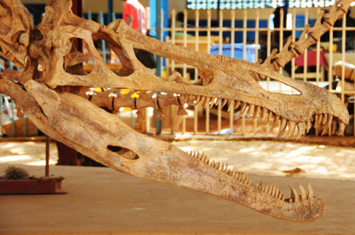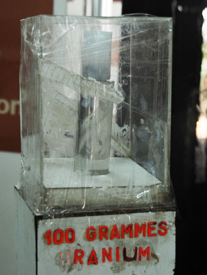 Niamey has a few interesting places worth visiting such as their national museum. The museum is fairly large and covers Niger’s culture, history and wildlife. I never realized this until I arrived to Niger, but it’s a major exporter of uranium, especially to France, and has mines in the central parts of the country. On the left is a display of 100 grams of uranium. I asked if I could buy it but it turns out it wasn’t for sale. Another interesting part of the museum is the large dinosaurs they have on display. Most of the museum is organized by small huts that each have their own theme, such as the uranium mining one. Photos aren’t allowed indoors so I don’t have anything to share from the cultural sections. They included exhibits that showed tribal weapons and life, currency, and historic artifacts that are important to Niger. I don’t ever expect to see a vial of uranium again that is stored in a cracked taped up container again so I had to sneak in a photo of it.