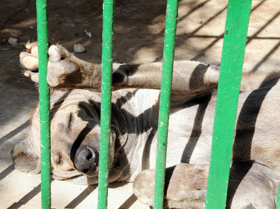 I was warned the zoo can be a bit depressing because of the small cages the animals are kept in. This turned out to be very true. Most of the cages didn’t have enough room for the animals to build up any speed much less run. Most were in an area that was about the size of a jail cell. The zoo did have a lot of wildlife here, from the warthogs, hyenas and lions above, to other species of birds and reptiles and even two hippos. When I visited the lions they began to get excited and all started roaring which sent the nearby caged monkeys into a screaming frenzy.