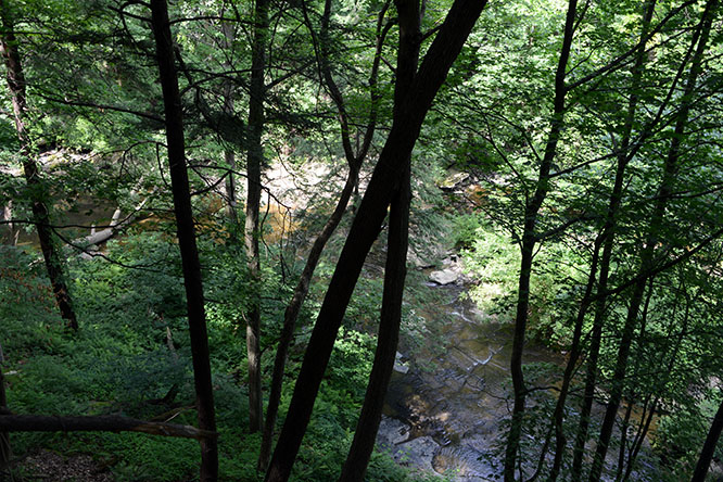 The last place I visited in the Cuyahoga Valley is the famous Brandywine waterfall. To reach the falls, you can either do a very short walk from a parking lot, or you can hike a few miles through one of the footpaths branching off the Towpath trail. Once you get into the area of the falls, you’ll follow a short boardwalk that hugs several exposed rock layer. Brandywine Falls are about 86 feet high (18 meters), and the most beautiful part of the park that I saw. I was surprised to see that this waterfall can even freeze in the winter time!