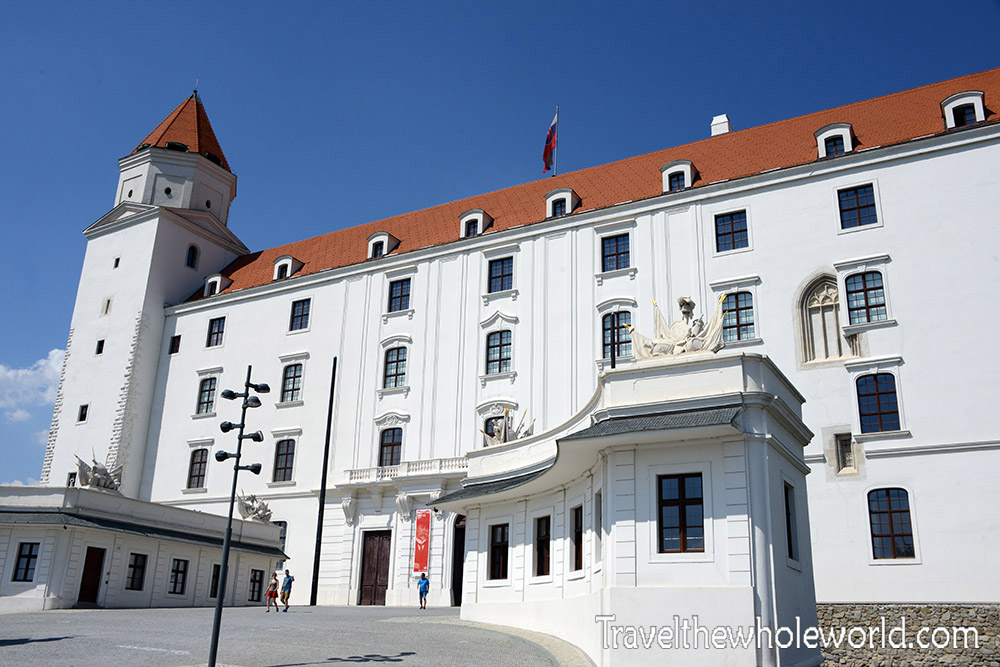 Bratislava Castle is in view in many parts of the city. This photo above was the best I could do to capture the whole castle. I figured there must be a better vantage point, but after I looked at professional shots online it I found they all looked similar to mine, minus of course drone shots. This ancient castle has been rebuilt and renovated a few times throughout its life. Some older photos before its last renovation show the castle where its exterior was much closer to brown, before being restored to white again.