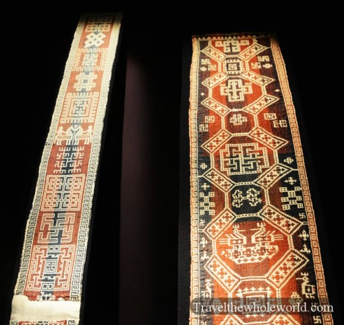 The museum has all kinds of textile art like this tapestry on the upper left. This one is said to be hundreds of years old but remains in excellent condition. Outside of artwork, there are plenty of other interesting artifacts like this ancient shield on the right. I’m not sure why but they seemed to have a large collection of skulls and recreations of the dead in the museum.