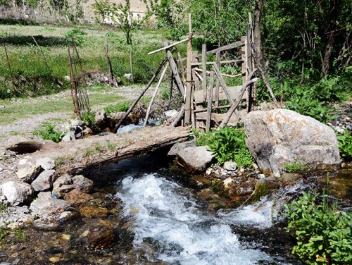 In addition to the Seven Lakes hike, on a different day I hiked up to a mountain pass that was just shy of 10,000 feet (3,000 meters). This hike was much steeper and demanding than the Seven Lakes hike which was just along the dirt road. The hike began at the village I was staying at so I had more than 3,000 feet (1,000 meters) of elevation gain. On the left was the very beginning of the hike as I started to ascend up the mountain valley. On the right is some of the surrounding mountains.