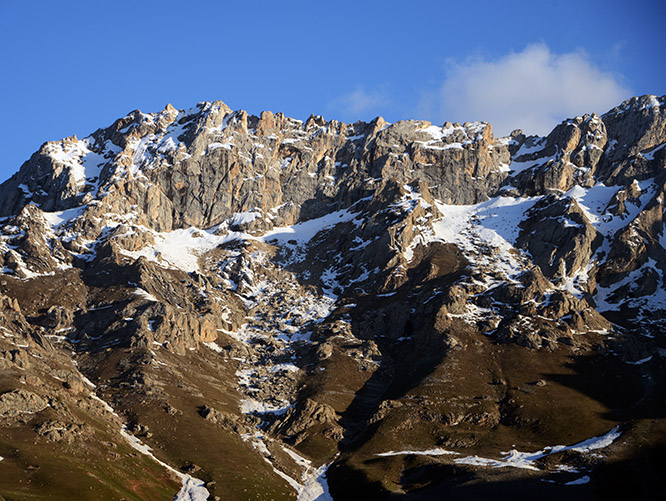 Tajikistan’s natural border with Uzbekistan is created by the Fann mountains. These mountains rise to altitudes as high as 18,000 feet (5,500 meters), and have some of the country’s most beautiful scenery and best hiking. Although Tajkikistan’s Pamir mountains in the east reach altitudes of 25,000 feet (7,500 meters), the main benefit to the Fann mountains are their easy access and stability. I was actually planning to visit the Pamirs myself, but violent conflicts between the locals and the Tajik government ended up closing that entire region to foreigners. So instead I found myself in the Fann mountains, and decided to do one of the country’s most popular hikes, in an area known as the Seven Lakes. Photographed above is the first lake at about 5,000 feet (1,500 meters, with a deep blue that none of the others came close to.